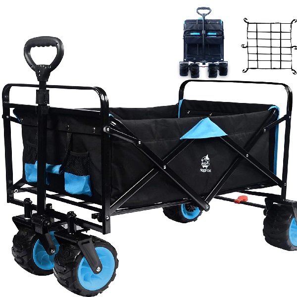 [With Cargo Net and Sturdy Straps] Equipped with sturdy cargo net, the goods loaded in the folding Wagon can not fall off, hold more items and increase efficiency. Designed with sturdy straps for kids safety sitted in the Wagon cart.