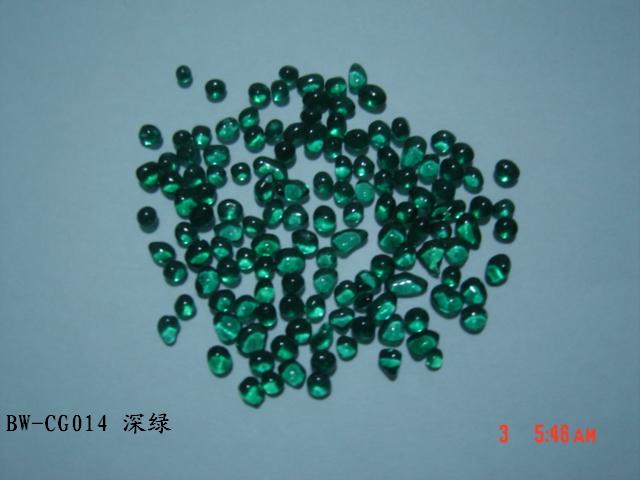 Irregular Color Glass Beads Color glass bead /Glass Grit/Cullet/Fire glass is a new kind of material for deluxe decoration. This Kind of beads are made of glass powder in different colors. It is used in the kitchen counter-tops, Terrazzo, Landscaping, aquariums, fire pits, exterior walls decoration, courtyards, footpaths and swimming pools.It will be dazzling and resplendent when the sunlight or lamplight is shining on it. We have more than 30 kinds of colors.
